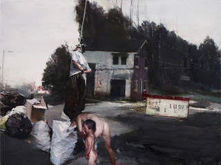 Mortimer's work is depressing, scary, violent, and very real, and I think that's what attracts me to his paintings in an uncomfortable kind of way; I don't like them but I enjoy that they are scary, morbid, and different from what I'm used to seeing. Even if I don't believe there's any intellectual brilliance to his ideas, I can't help their emotional impact.